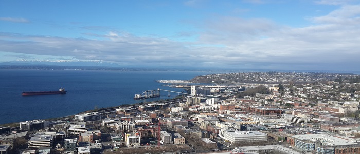 西雅图创建于1869年,西雅图都市区人口340万,坐落在美国西北部太平洋沿岸,位于华盛顿州普吉特海湾和华盛顿湖之间的国王郡,是国王郡的郡府所在地。西雅图北距美加边境仅174公里,温哥华240公里。西雅图是美国太平洋西北区最大的城市,也是美国太平洋西北部商业,文化和高科技的中心,是贯穿太平洋及欧洲斯堪的纳维亚半岛的主要旅游及贸易港口城市。西雅图常年被青山绿水环绕,南面不远处就是美国著名的瑞尼尔山。西雅图的官方别名为“翡翠之城”。